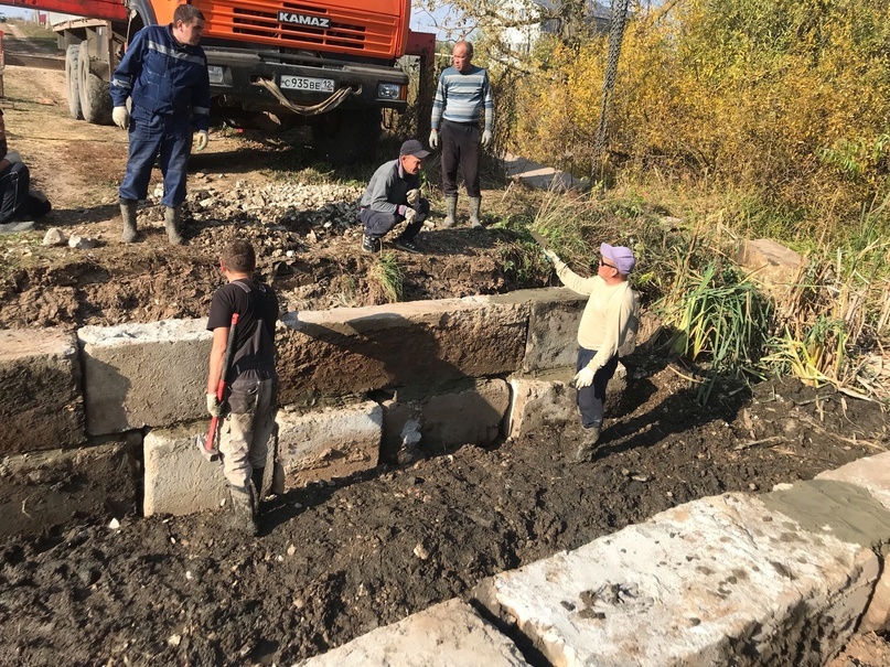 Поселковая администрация со своей стороны выделила кран. Мужчины отреставрировали основание моста и переложили плиты.