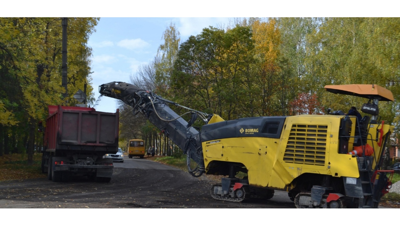 В настоящее время на участке от спортзала до улицы Новая фрезой снят верхний слой старого асфальта. Глубокие ямы засыпаны щебнем.