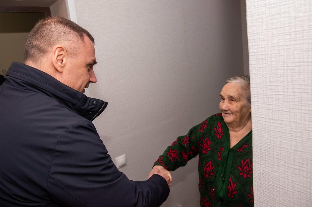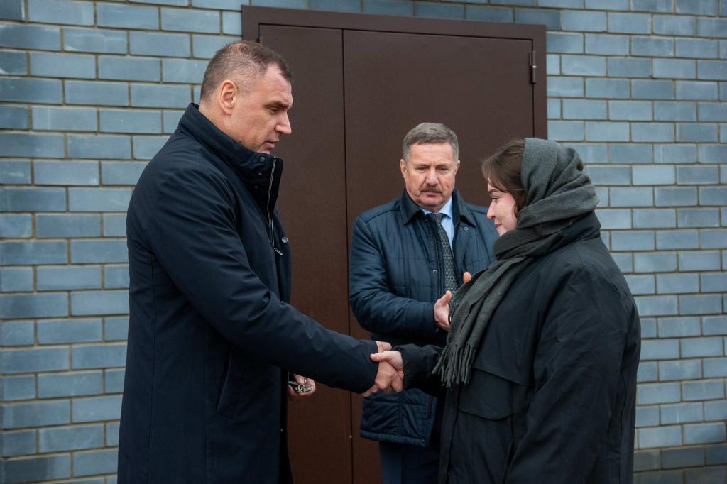 Юрий Зайцев поздравил всех с новосельем, пожелал счастья, благополучия и осмотрел квартиры.