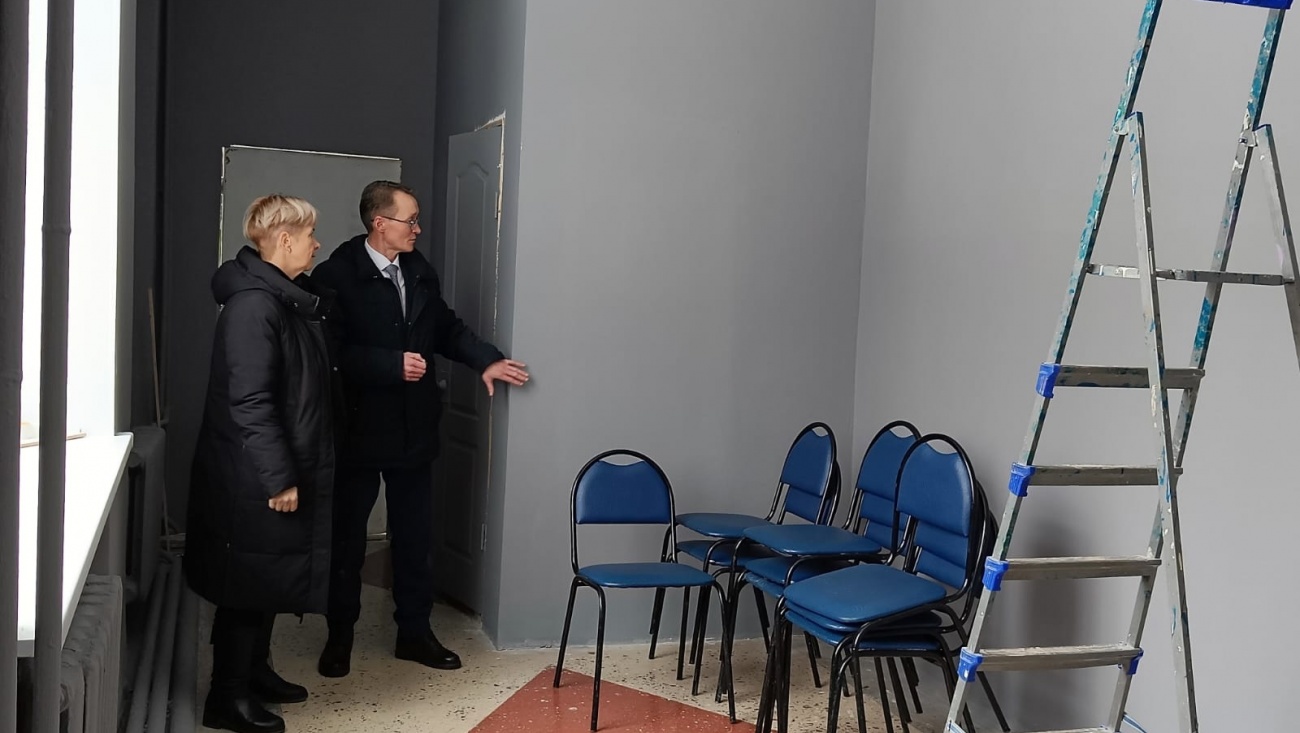 В настоящее время в помещениях заменили оконные блоки, оштукатурили и покрасили стены, установили перегородку с дверным проёмом. Совсем скоро завезут новую мебель.
