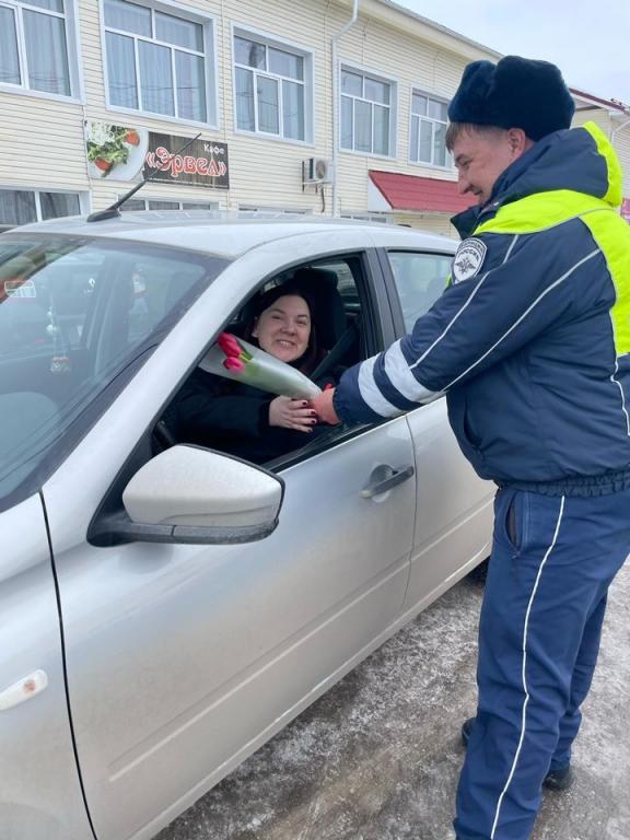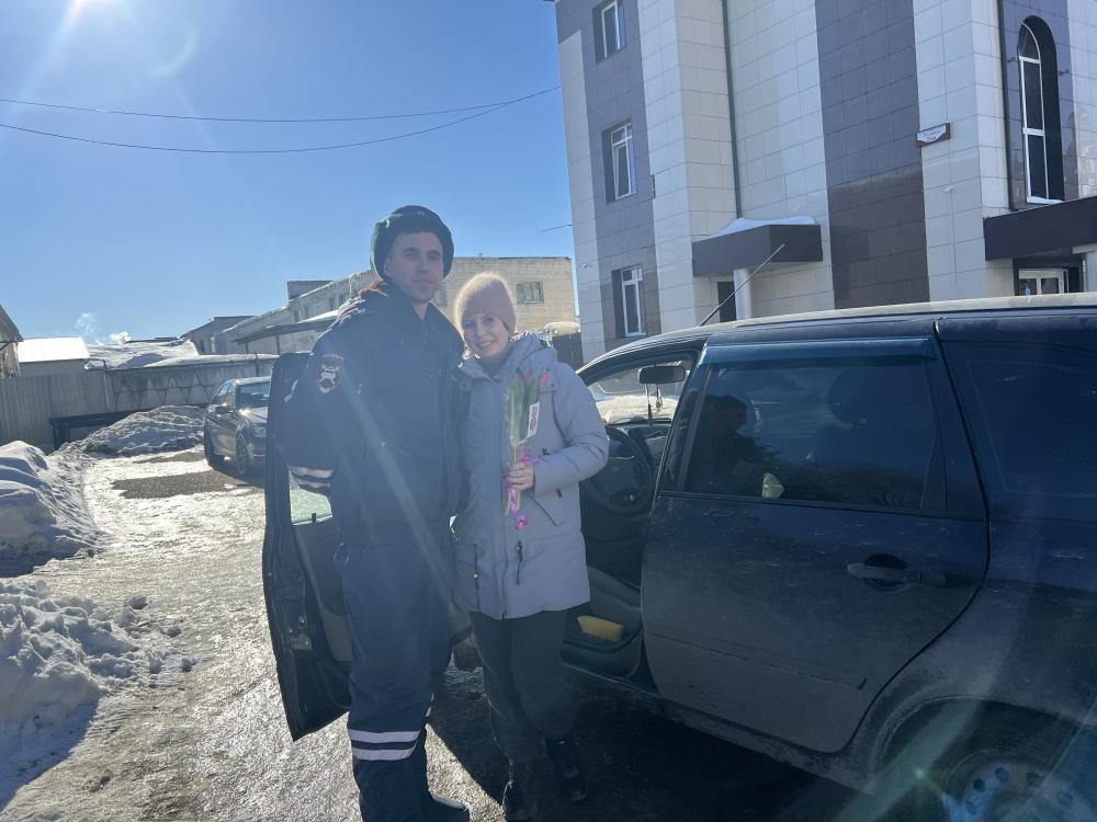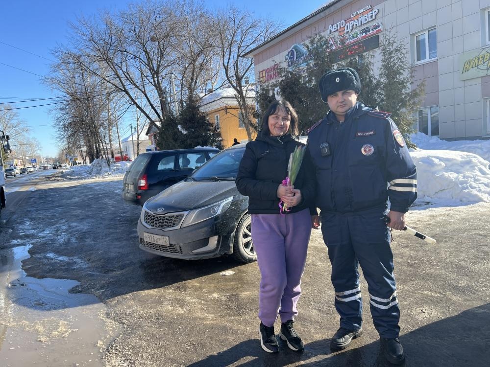 В Марий Эл сотрудники ГИБДД дарят женщинам за рулём букеты цветов