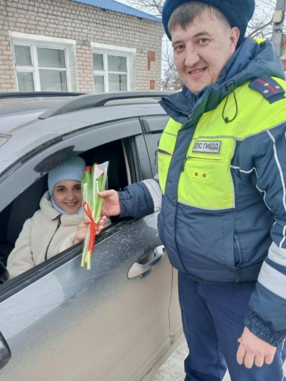 В посёлке Мари-Турек автолюбительниц с наступающим Международным женским днём поздравлял руководитель отделения Госавтоинспекции МО МВД России «Мари-Турекский» Булат Файзрахманов.