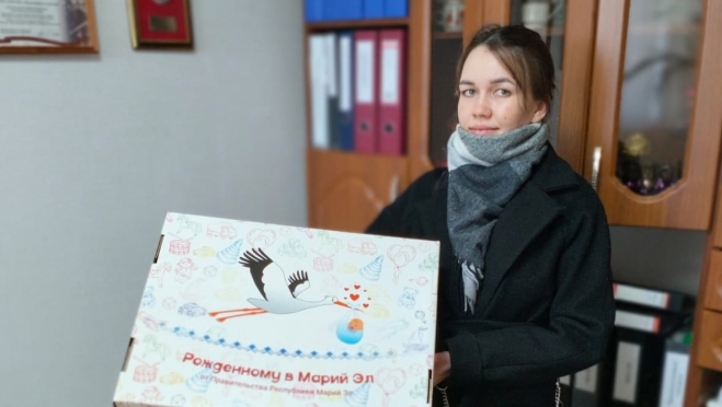 Родители первенцев в Медведевском районе получили наборы для новорожденного.