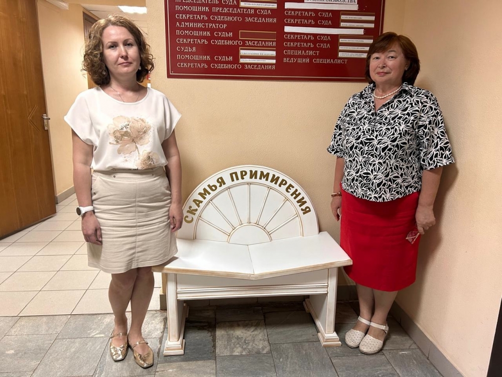 «Скамья примирения» символизирует мирную миссию суда — как место переговоров, решения конфликтов, примирения сторон.