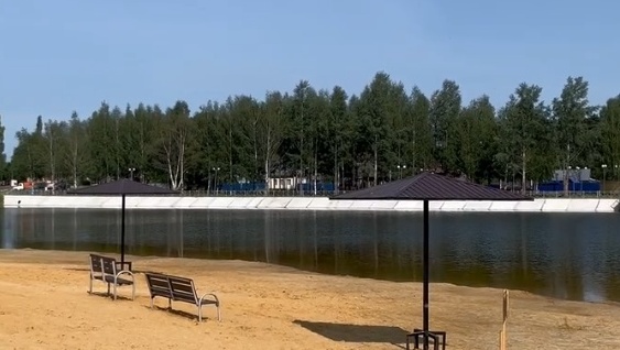 Пляж соответствует всем требованиям безопасности, обозначены границы купания специальными буйками, установлены кабинки для переодевания, информационные стенды, «грибочки» и лавочки.