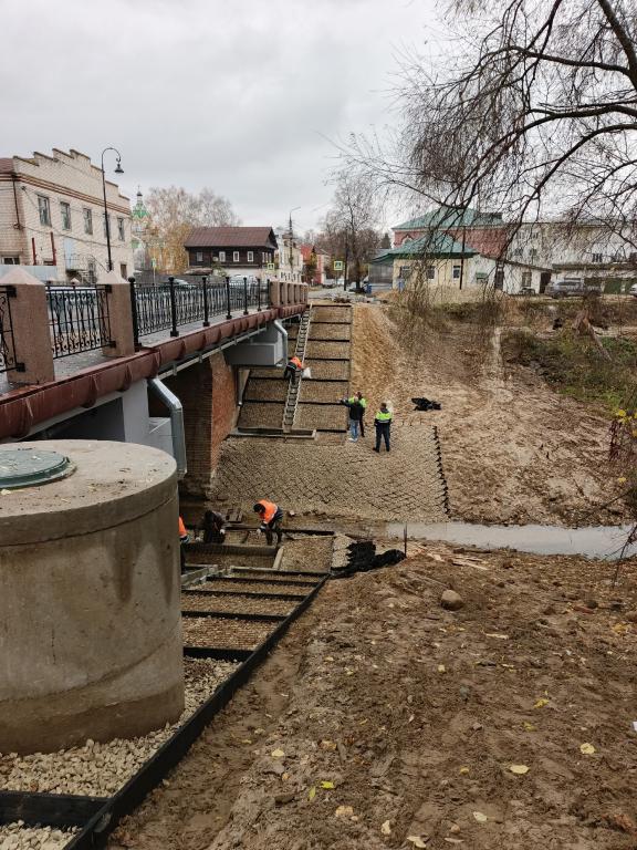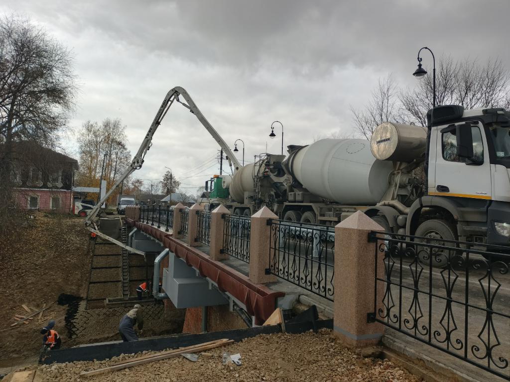 Сейчас на объекте проводятся работы по бетонированию откосов.