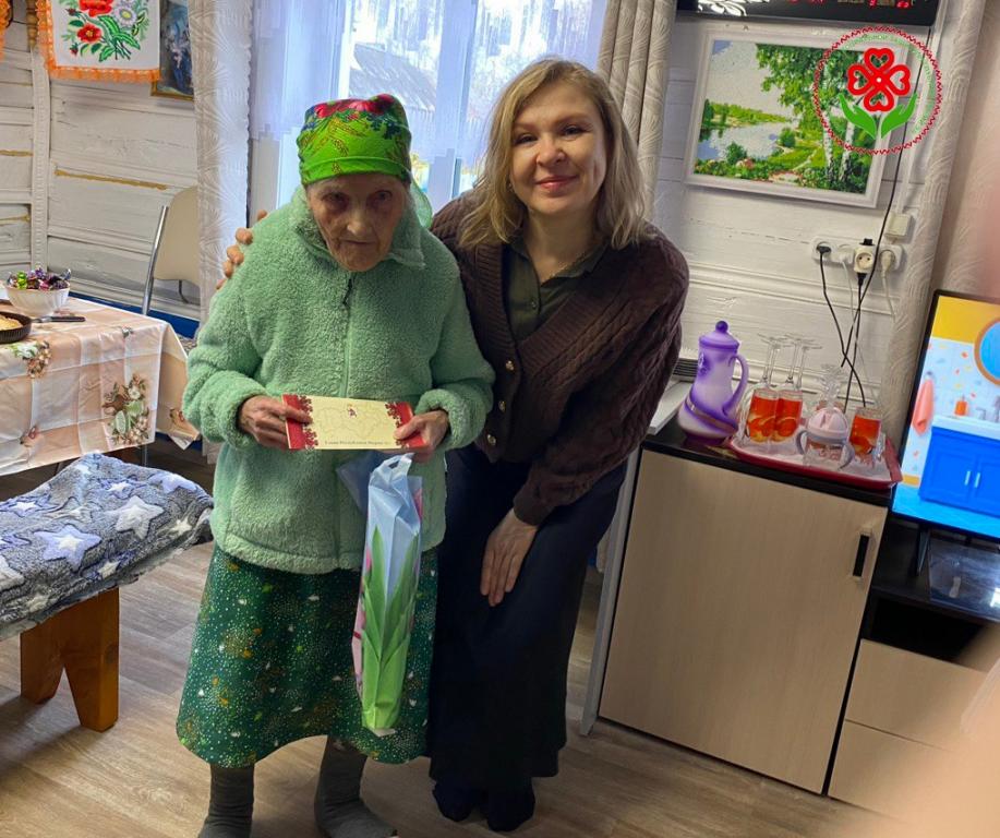 В день рождения юбилярша принимала поздравления не только от родных и близких людей, пенсионерку пришли поздравить начальник отдела по организации социального обслуживания Министерства труда и социальной защиты Республики Марий Эл Наталья Мустафина, директор Комплексного центра Любовь Карякина, представители администрации Сернурского района и районного совета ветеранов.