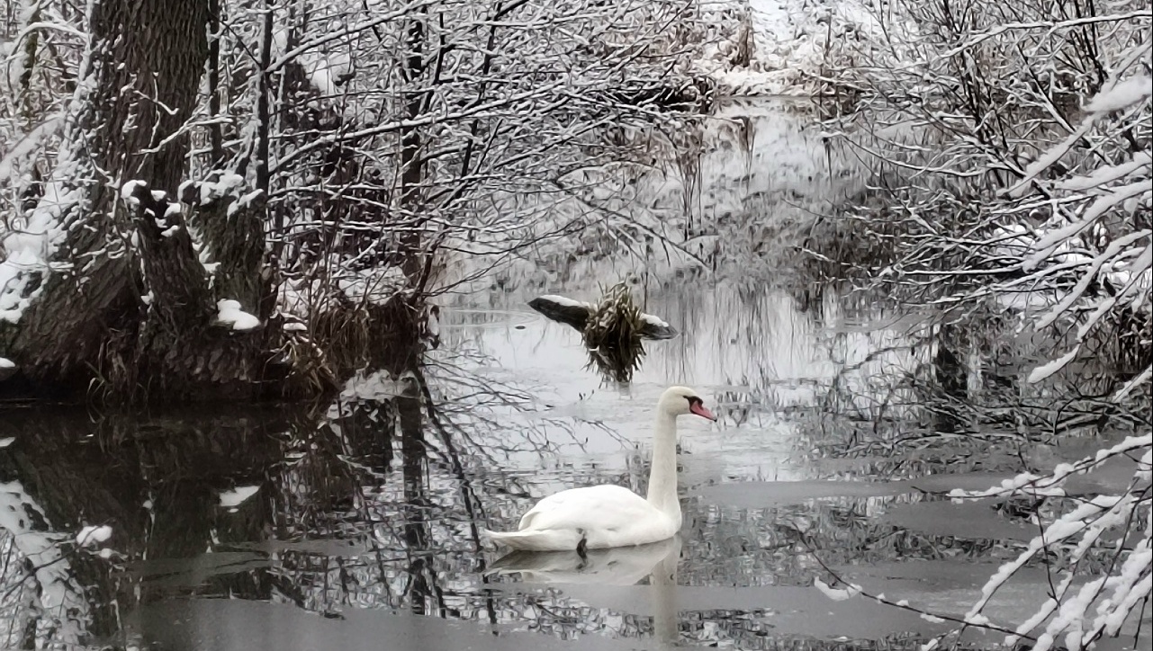 Пруд уже подмерзает, и местные жители крайне обеспокоены судьбой птицы. Жители деревни просят о содействии в его спасении, пишет газета «Вестник района».