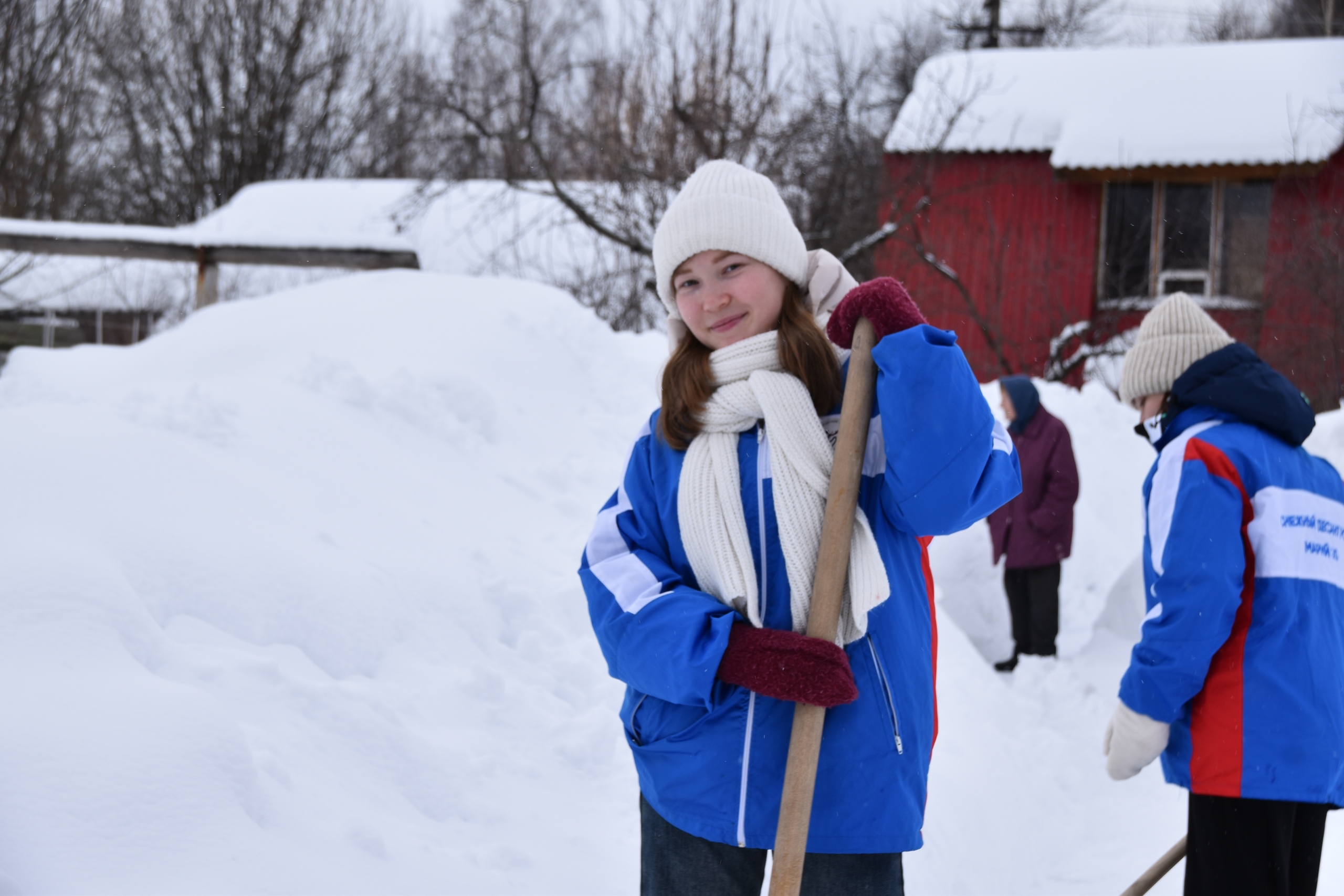 На следующий день молодёжь взяла в руки лопаты и отправилась помогать пожилым жителям села. Студотрядовцы чистили подъезды к домам, дорожки, дворовые территории, крыши.