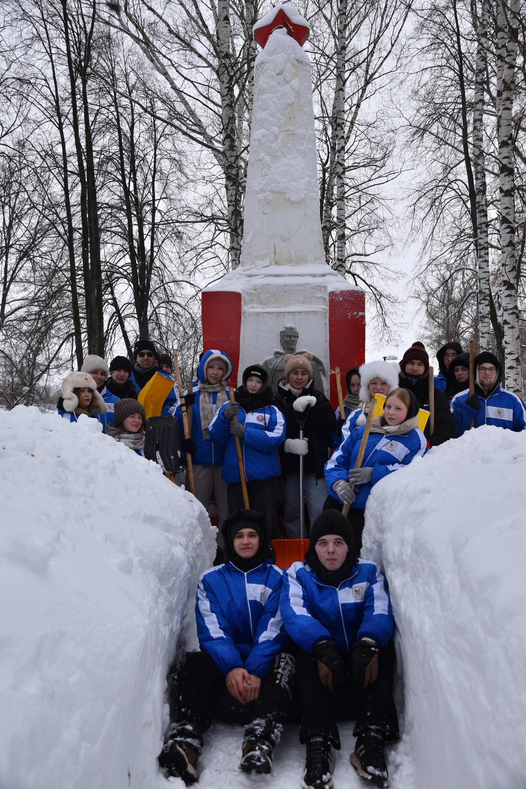 В ходе акции ребята расчистили снег у памятника участникам Великой Отечественной войны.