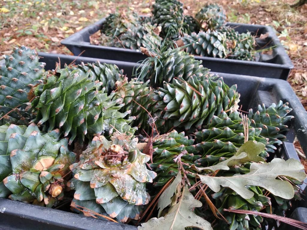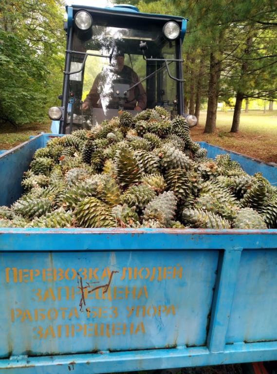 Из собранного урожая извлекут семена, которые затем будут посеяны. Часть шишек в неизменном виде поступит на продажу.