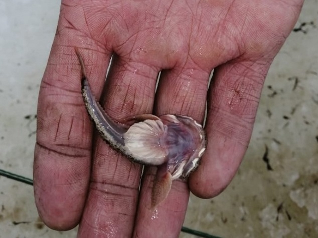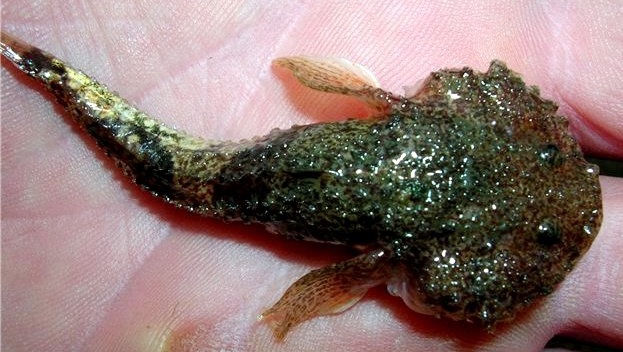 — Внешне рыба напоминала обыкновенного подкаменщика, но голова была по отношению к телу очень широкая, а на теле были многочисленные бугорки и костные зёрнышки. С нижней стороны в передней части было подобие присасывательного диска. Оказалось, что этот вид относится к семейству бычковые и называется звездчатая пуголовка, — отмечает эколог.