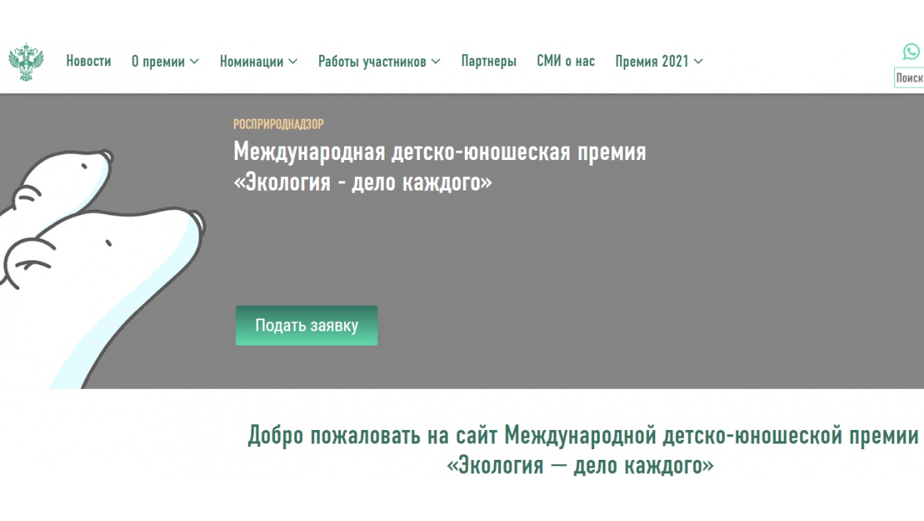 Федеральной службой по надзору в сфере природопользования дан старт Международной детско-юношеской премии «Экология – дело каждого».