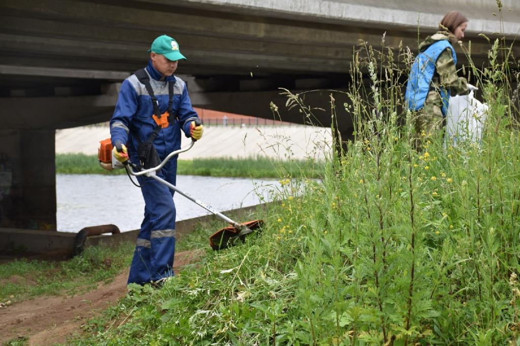 В Йошкар-Оле прошла экологическая акция по очистке берега реки Малая Кокшага. Кроме того, возле Вознесенского моста ещё и скосили растительность. Субботник приурочили к акции «Вода России».