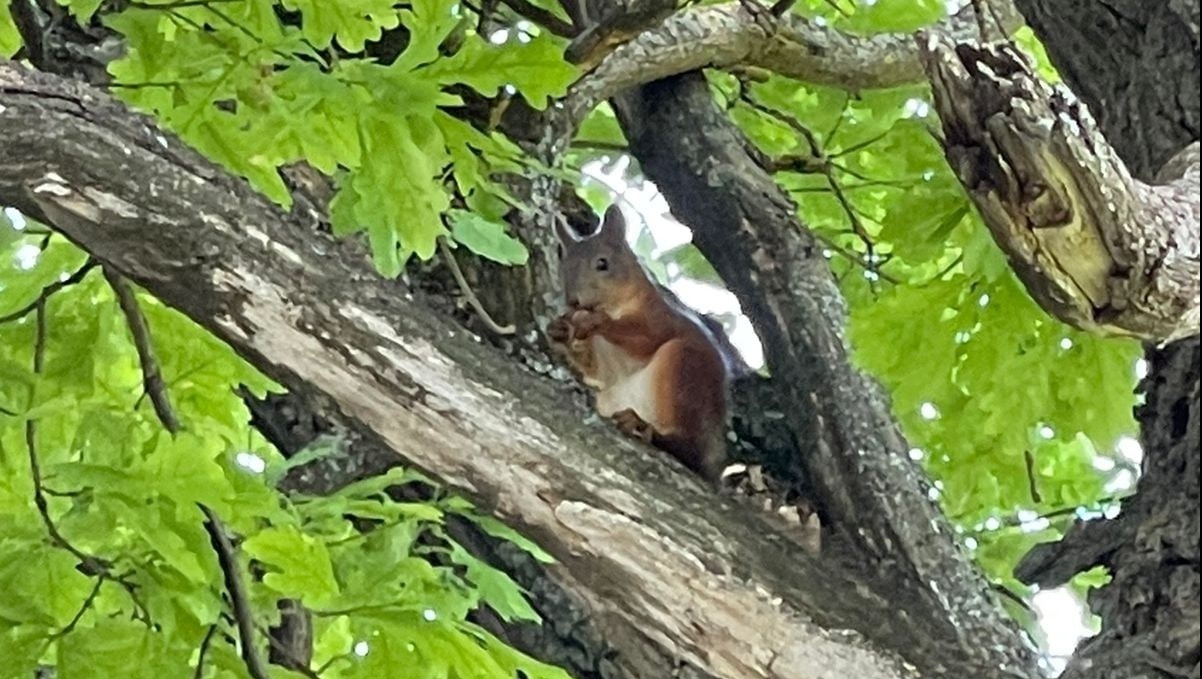 Ботанический сад облюбовали белки. А всё потому, что здесь они нашли для себя вкусное лакомство — поспевающие семена в шишках хвойных.