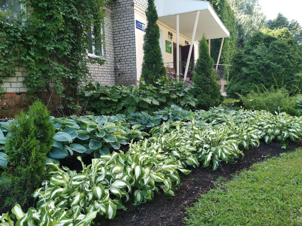 В 1999 году хосты разместили под кронами аллеи молодых лиственниц. Но со временем деревья выросли и иссушили почву, что сказалось на состоянии многолетников. Поэтому в 2018 году их пересадили к лабораторному корпусу. Очень быстро цветы преобразились, изменился размер их листьев, окраска, появилась присущая форма и высота.