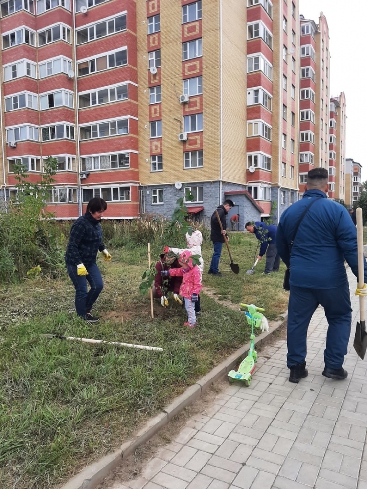 Мэрия отметила, что в посадке участвовали 30 человек, из них трое взрослых и двое детей — жители самого спального района.