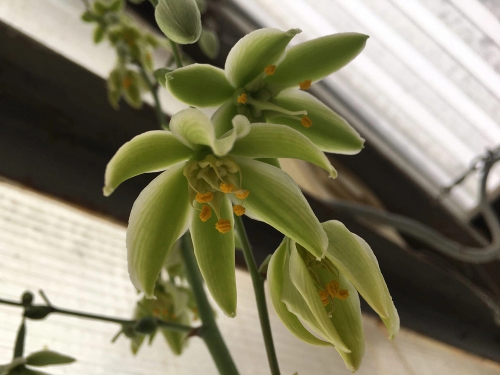 Ещё одно растение, распустившееся в оранжерее, — Агава сизалевая. В дикой природе её можно увидеть на островах Атлантического океана, в Африке и в Австралии. Её также активно культивируют во многих тропических странах для получения сизаля. Материал идёт на изготовление канатов, сетей, шпагата, упаковочных тканей, классических мишеней для дартса, матрацев, мочалок, щёток и тому подобного. А в Китае сизаль используют как контрацептив, рассказали экологи Ботсада.