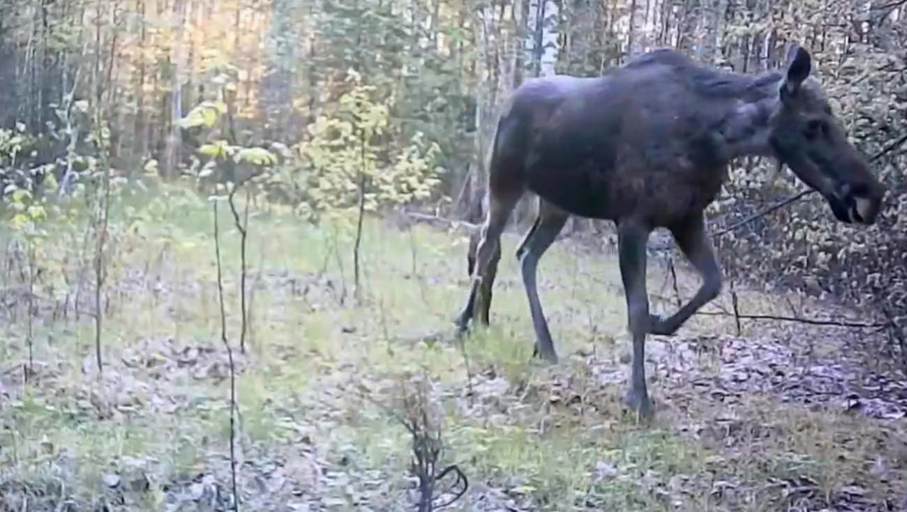 В марийском заповеднике в объектив фотоловушек попала лосиха с малышом