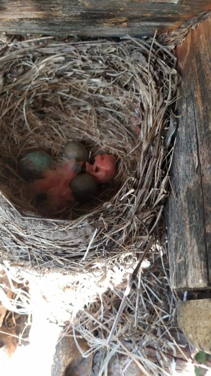 Спустя время там появилось несколько птенцов. Заметил и сфотографировал птиц госинспектор заповедника Николай Субботин. Она рассказал, что гнездо имеет чашеобразную форму и сделано из сухих стеблей травянистых растений, иногда попадается мох, лишайники, тонкие прутики. Всё это обильно скреплено землёй.