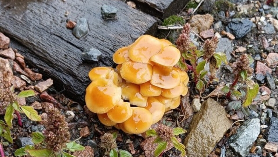 Грибы отличает ярко-оранжевый цвет шляпок. Их научное название фламмулина бархатистоножковая.