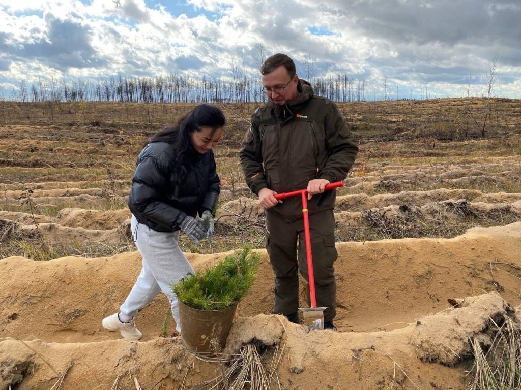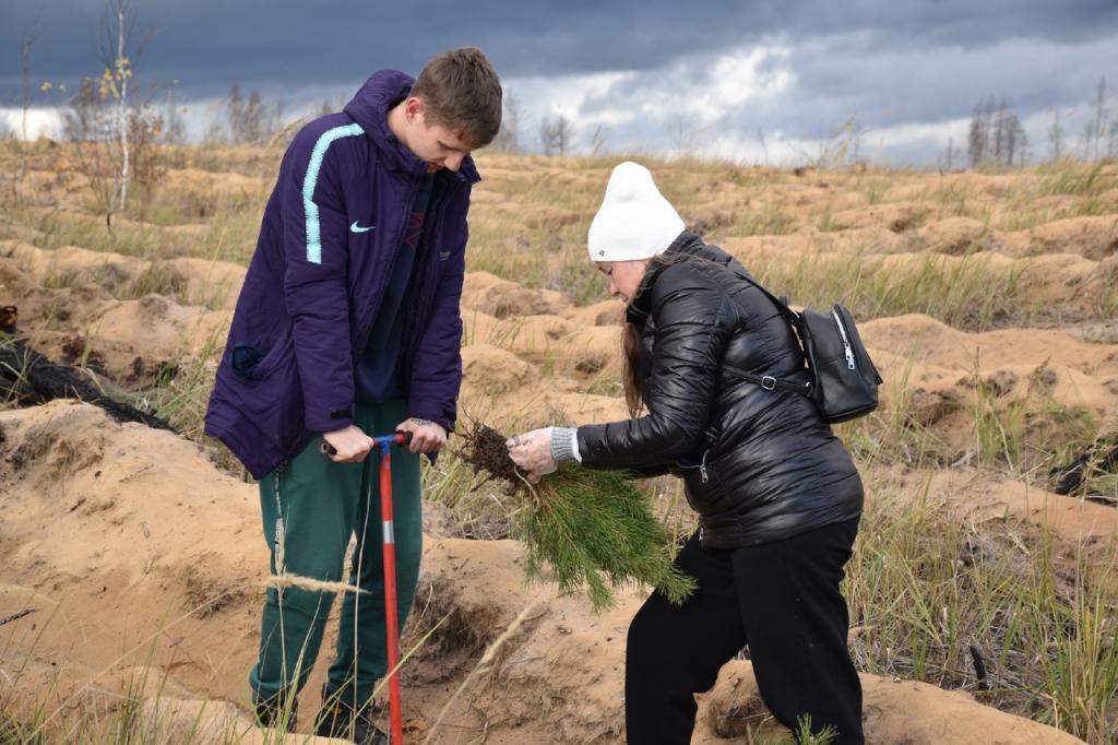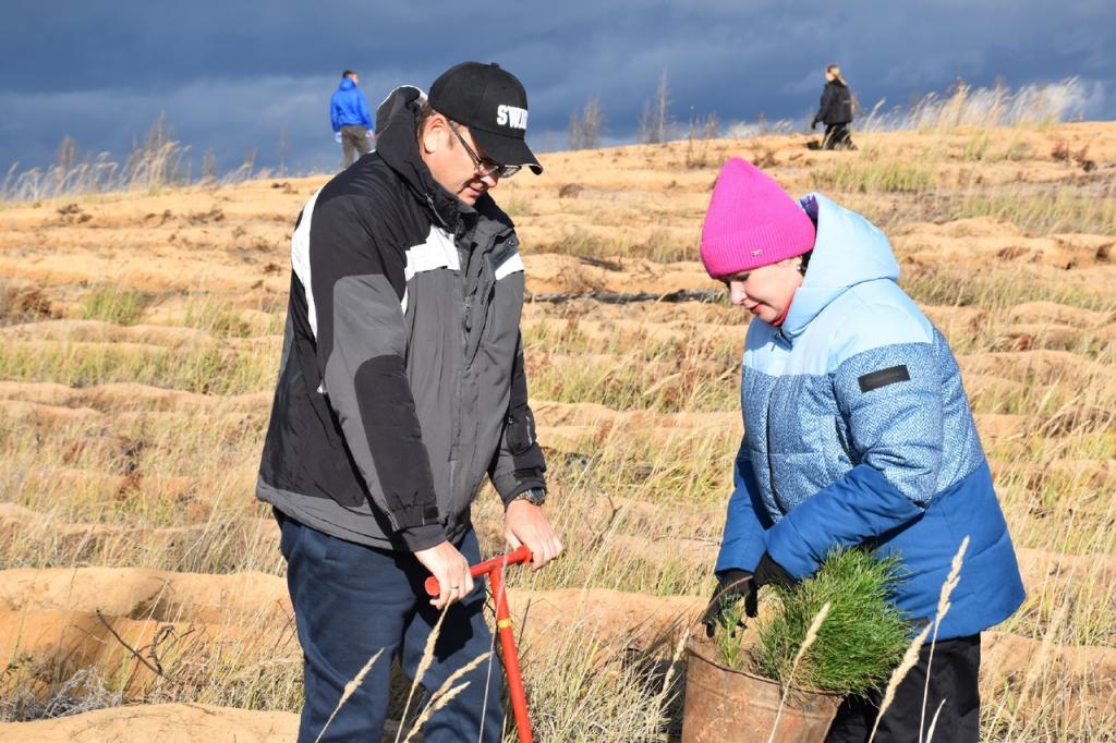 Пройдя инструктаж, участники акции посадили на 15 га земли 50 тысяч сеянцев сосны с открытой корневой системой. Землю для сеянцев обрабатывали мечом Колесова. Дождливая погода не помешала доброму делу.