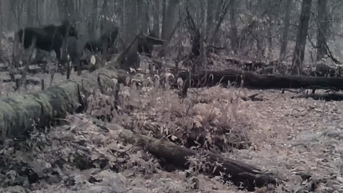 В заповеднике «Большая Кокшага» в объектив фотоловушки попала семья лосей: мама и два лосёнка.