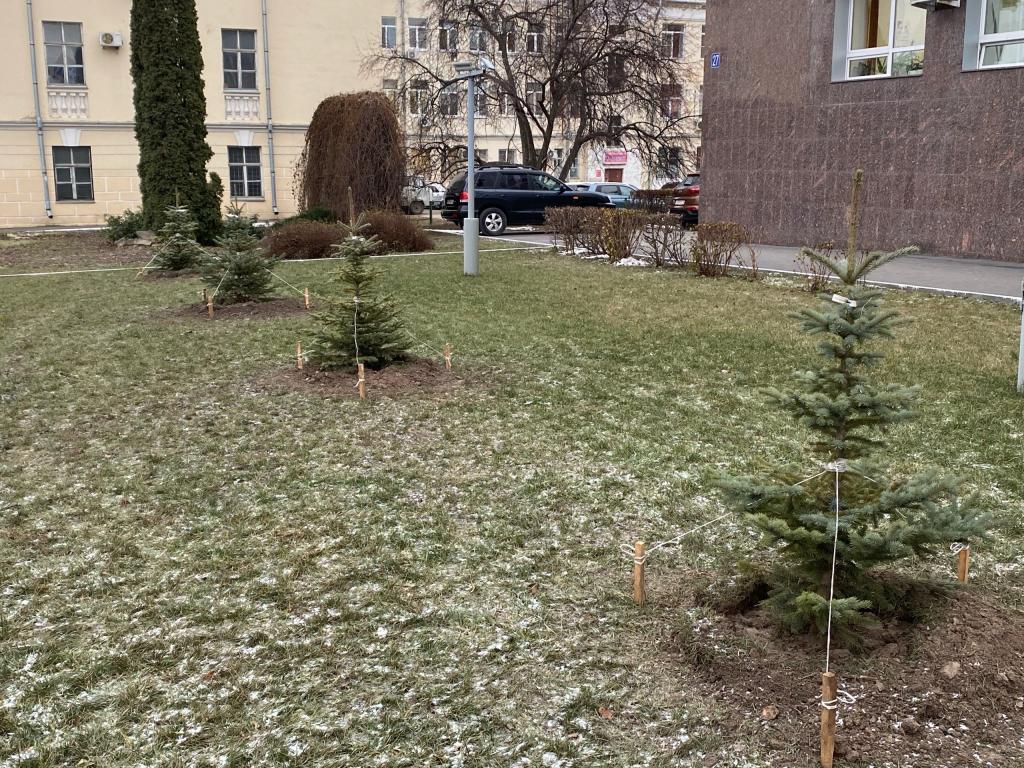 Возле мэрии в Йошкар-Оле высадили молодые ели