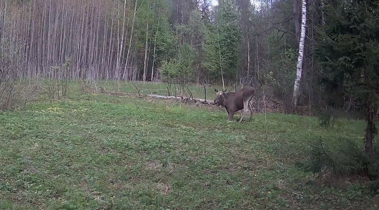 Отсматривая материал, зафиксированный фотоловушками заповедника, специалисты заповедника «Большая Кокшага» обнаруживают много занимательных моментов. Так, в фотоловушку попал сохатый. В самом начале видео животное стоит на коленях и что-то ищет на земле.