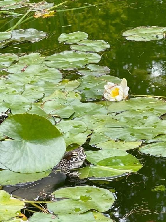 Ботаники наблюдают на территории сада разнообразие амфибий. Погода позволяет им без вреда для кожи от ультрафиолета прохлаждаться на поверхности у всех на глазах.