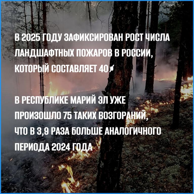 В Марий Эл в этом году произошло 75 ландшафтных пожаров. Это в 3,9 раза больше аналогичного периода прошлого года.