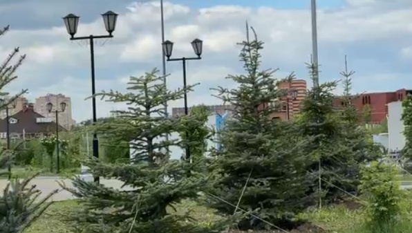 Бригада озеленителей АО «Город» высадила 45 туй, 20 европейских елей, 22 голубые ели, 40 гортензий, 10 остролистных клёнов, два красных дуба.