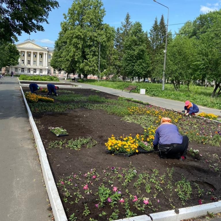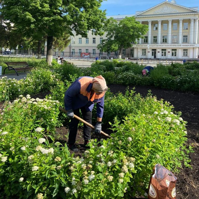 Сейчас завершаются посадочные работы в сквере Наты Бабушкиной. На бульваре Чавайна с участием студентов проходит прополка цветников.
