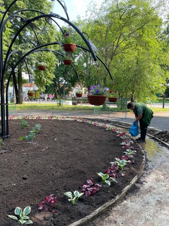 В частности, на территории отдыха появилась ещё одна необычная клумба с металлической конструкцией.