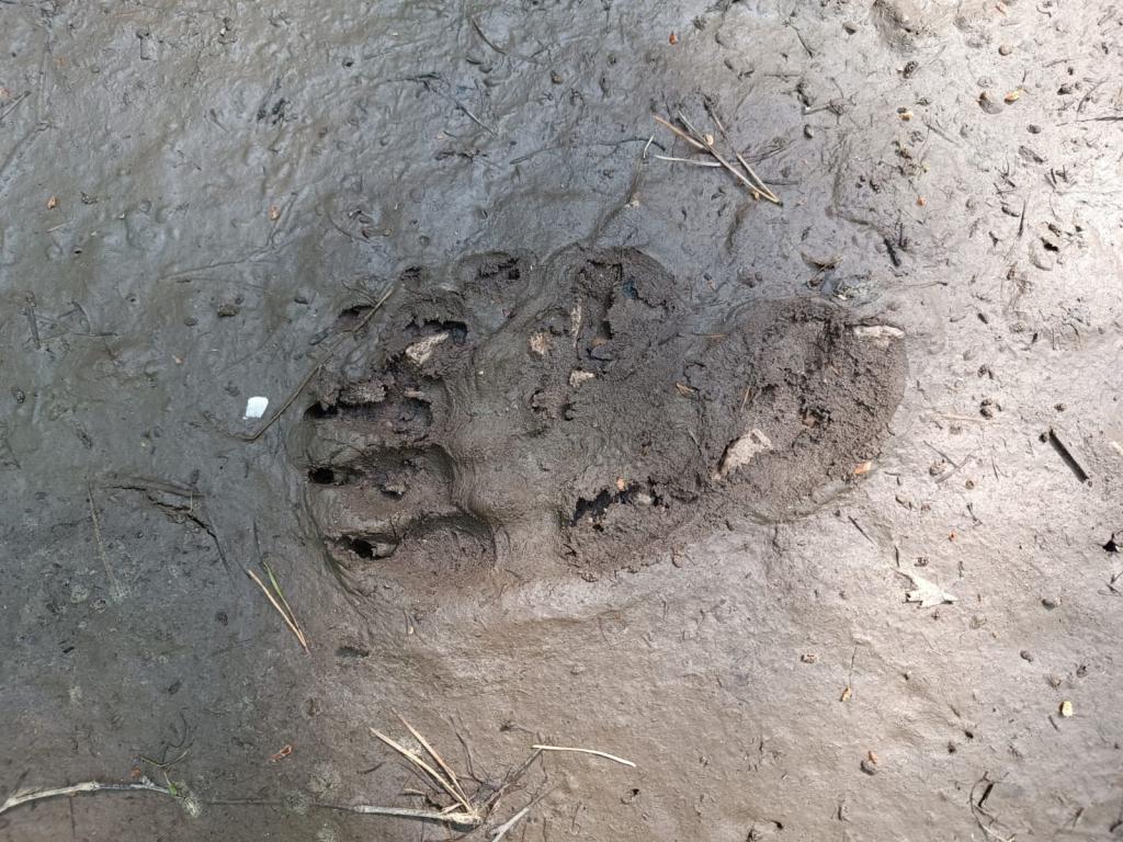 Недавно в лесу сфотографировали свежие следы взрослой медведицы и её маленького медвежонка. Их запечатлела на камеру государственный инспектор заповедника Наталья Сафина.