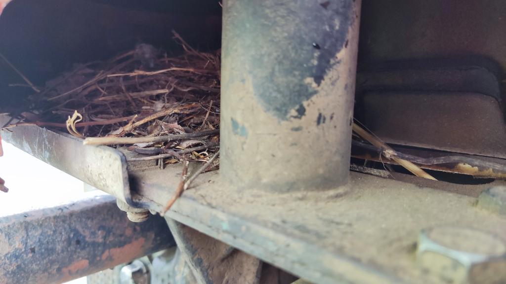 Под капотом трактора в Ботаническом саду в Йошкар-Оле вновь своё гнездо устроила трясогузка.