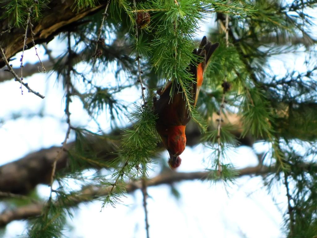 На лиственницах в Ботсаду Йошкар-Олы обосновались клесты-еловики.