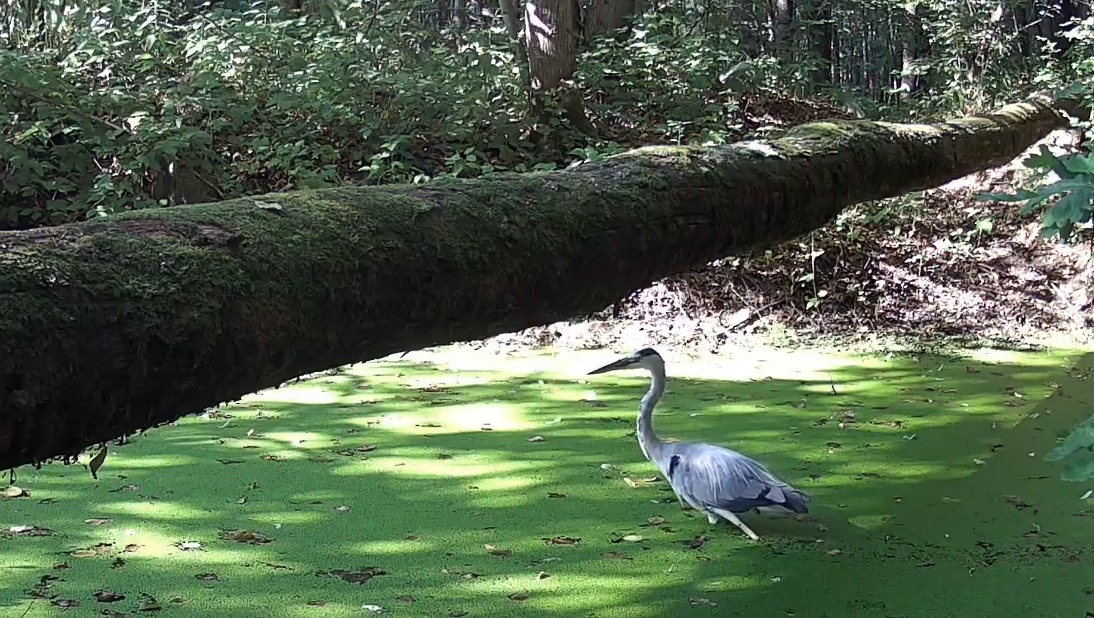 Камеры заповедника «Большая Кокшага» сняли грациозную цаплю. Птица неспешно дефилировала по болоту.
