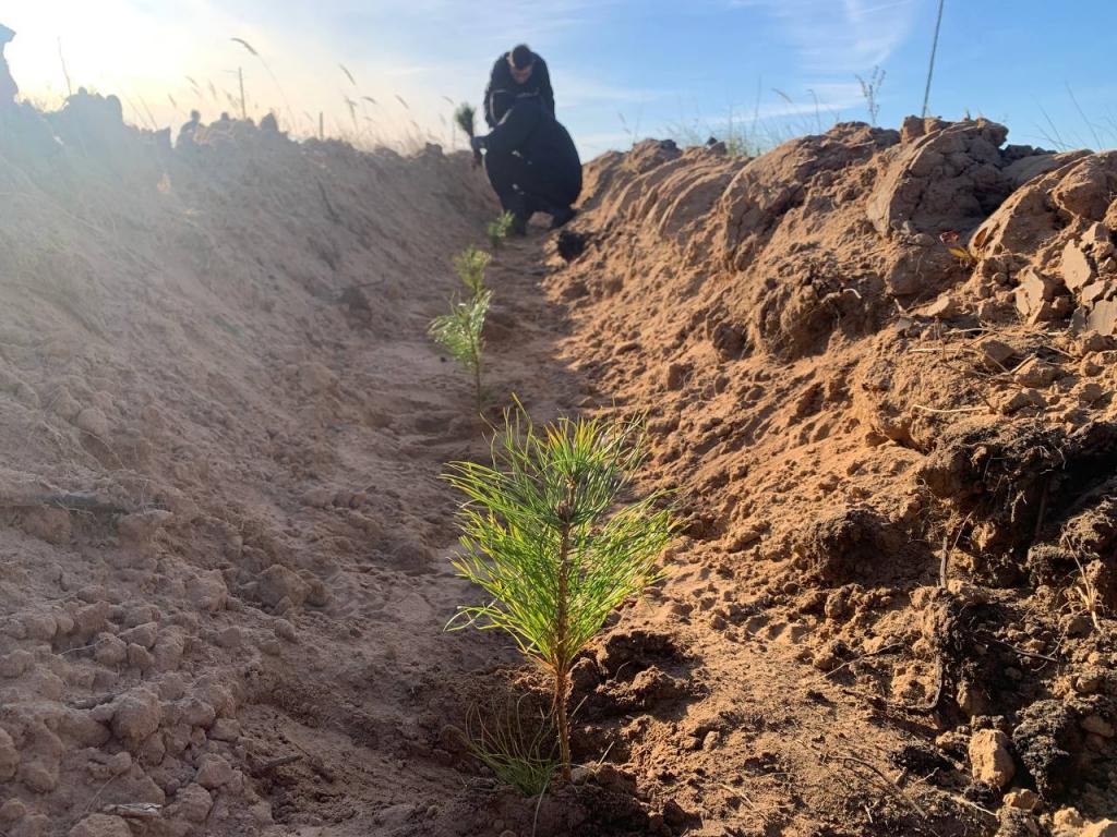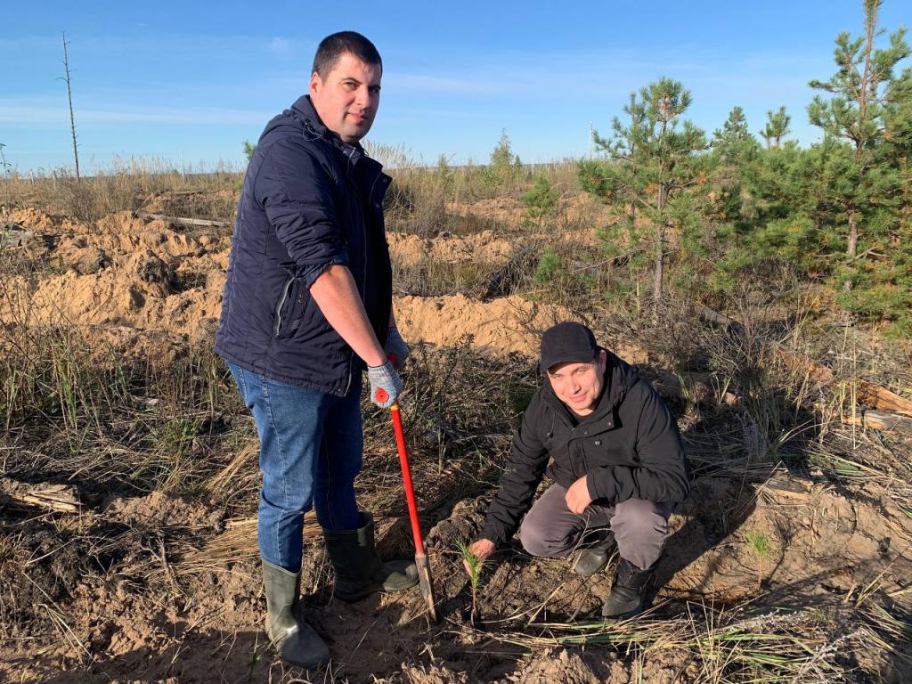 Работники аппарата управления и городских отделов высадили саженцы сосен для восстановления пострадавшего лесного массива республики.