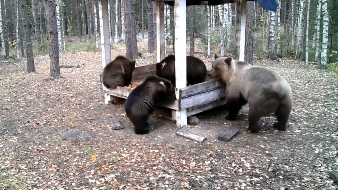 Кроме того, для мишек установлены кормушки. Они сделаны для того, чтобы они не покидали привычную для них территорию обитания. Экологи надеются, что примерно через месяц медведи насытятся и отправятся на боковую.