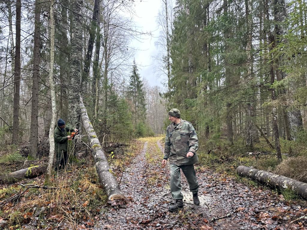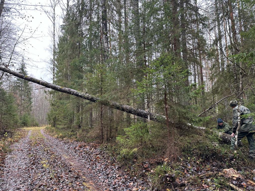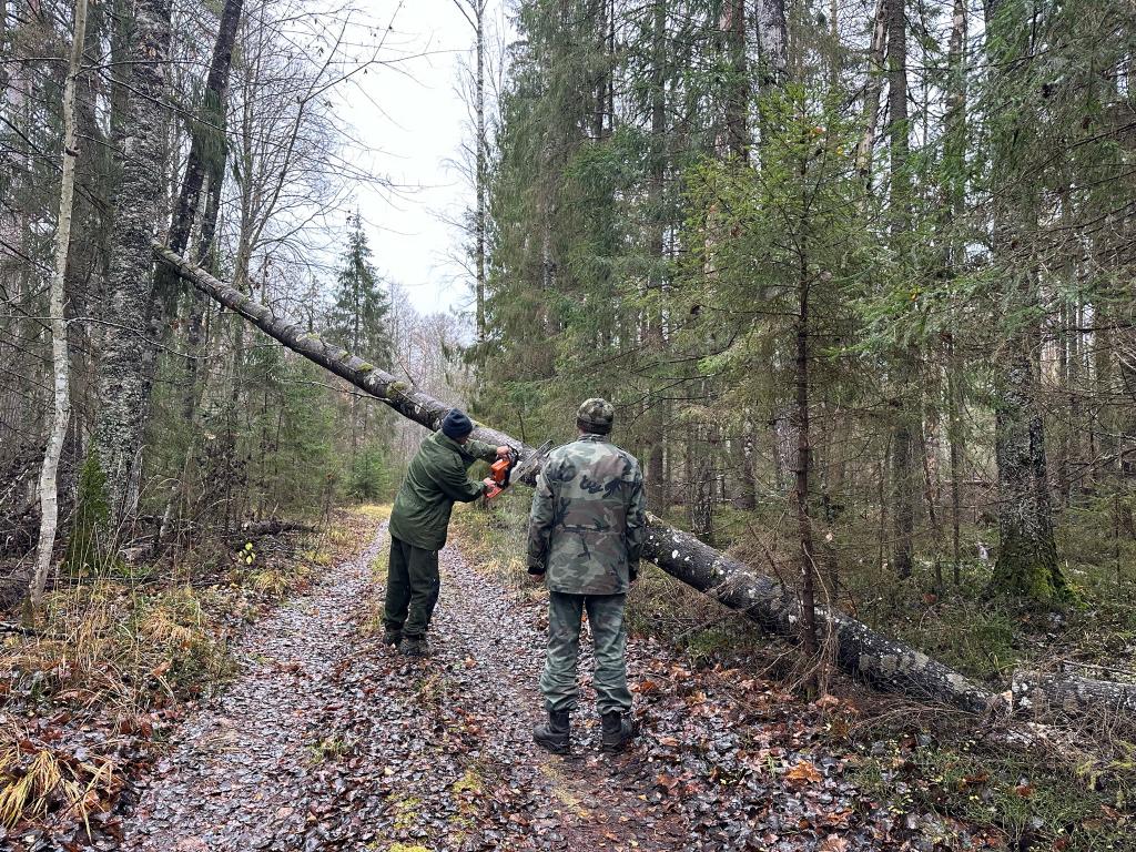 Сотрудники заповедника проводят работы по расчистке лесных дорог от поваленных деревьев.