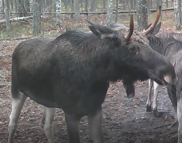 — Но особенно не позавидуешь самцу, которому достался в соперники бык-убийца. Так называют лося с необычными рогами: их нижние отростки длинные и острые, как стилеты. Обладатель этих стилетов легко вонзает их в бок противника, прокалывая легкие и другие внутренние органы. Такие раны практически всегда оказываются смертельными. Чтобы не допустить этого, быков-убийц в охотничьих хозяйствах стараются добывать в первую очередь, — рассказал руководитель Департамента животного мира республики Николай Шурков.