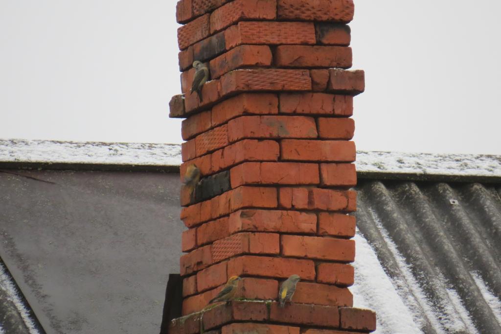 На печных трубах кордонного дома были замечены необычные гости — клесты-еловики.