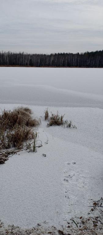 Государственный инспектор парка Вячеслав Кидалашев сделал снимки озера. На снегу чётко видны следы диких животных.