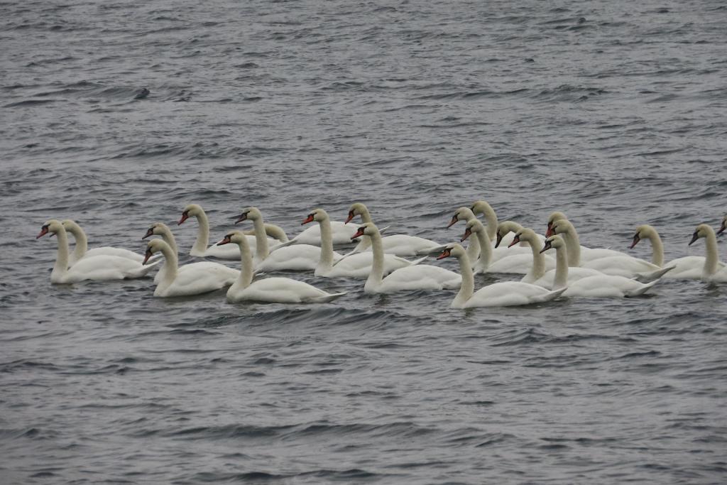 - Тут началось невообразимое, - рассказывает он. - Одни стаи прилетали, другие улетали. В какой-то момент на озёрах одновременно оказалось более 50 птиц. Среди них пять семей с молодыми птенцами.