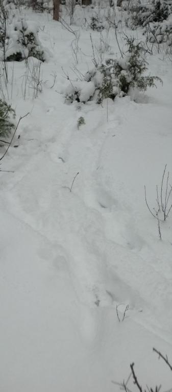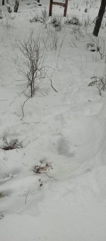 Судя по всему, в лесной столовой им понравилось, поскольку специалисты парка запечатлели и следы отдыха лосей, по которым видно, что они здесь устроили ещё и лежбище.