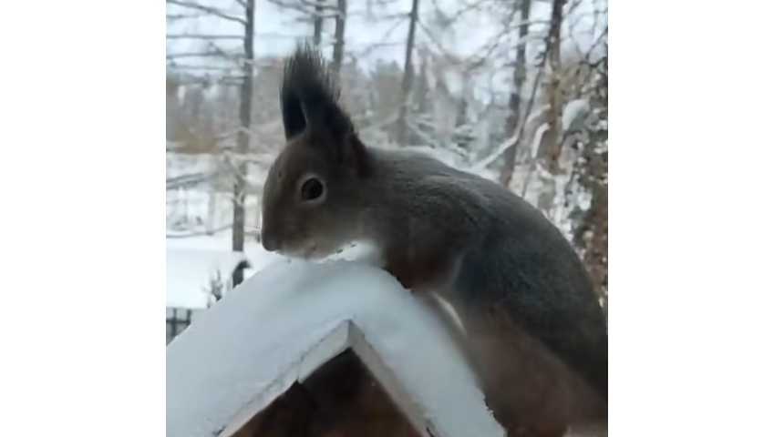 Белки в Ботаническом саду в Йошкар-Оле, кажется, обожают снег. За его поеданием и застали одну из белочек скрытые камеры парка.