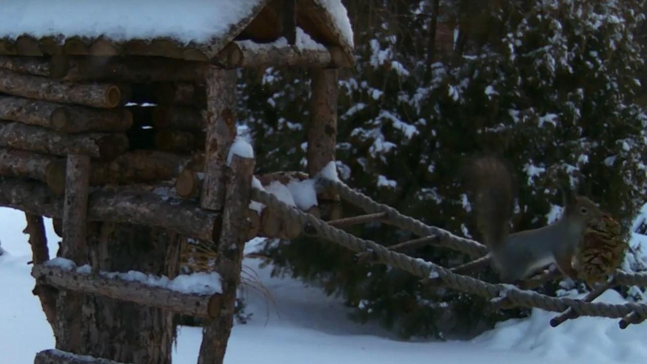Забираться внутрь очень удобно. Кормушки в виде избушек оснащены удобными приставными лестницами и висячими мостиками.