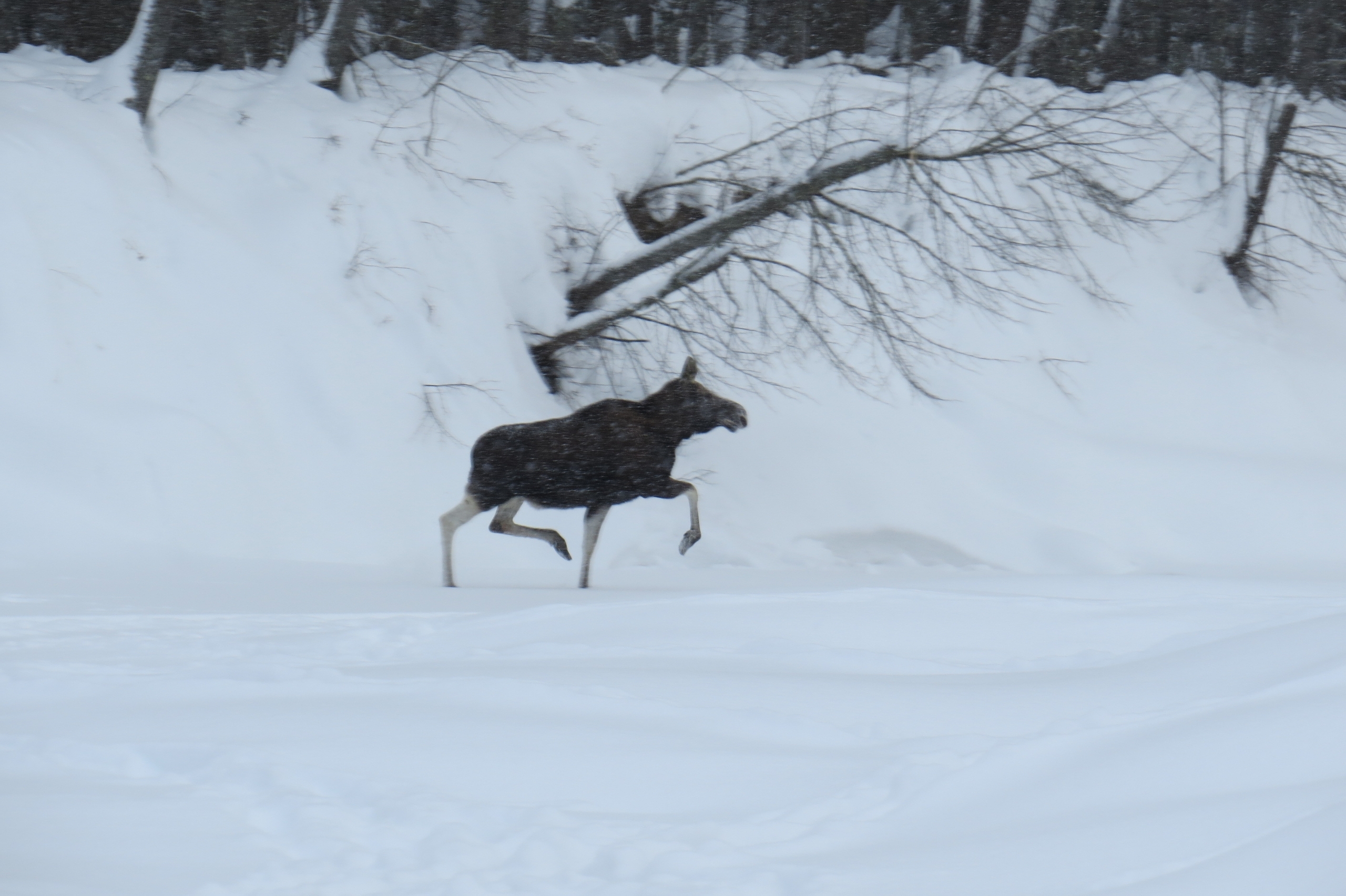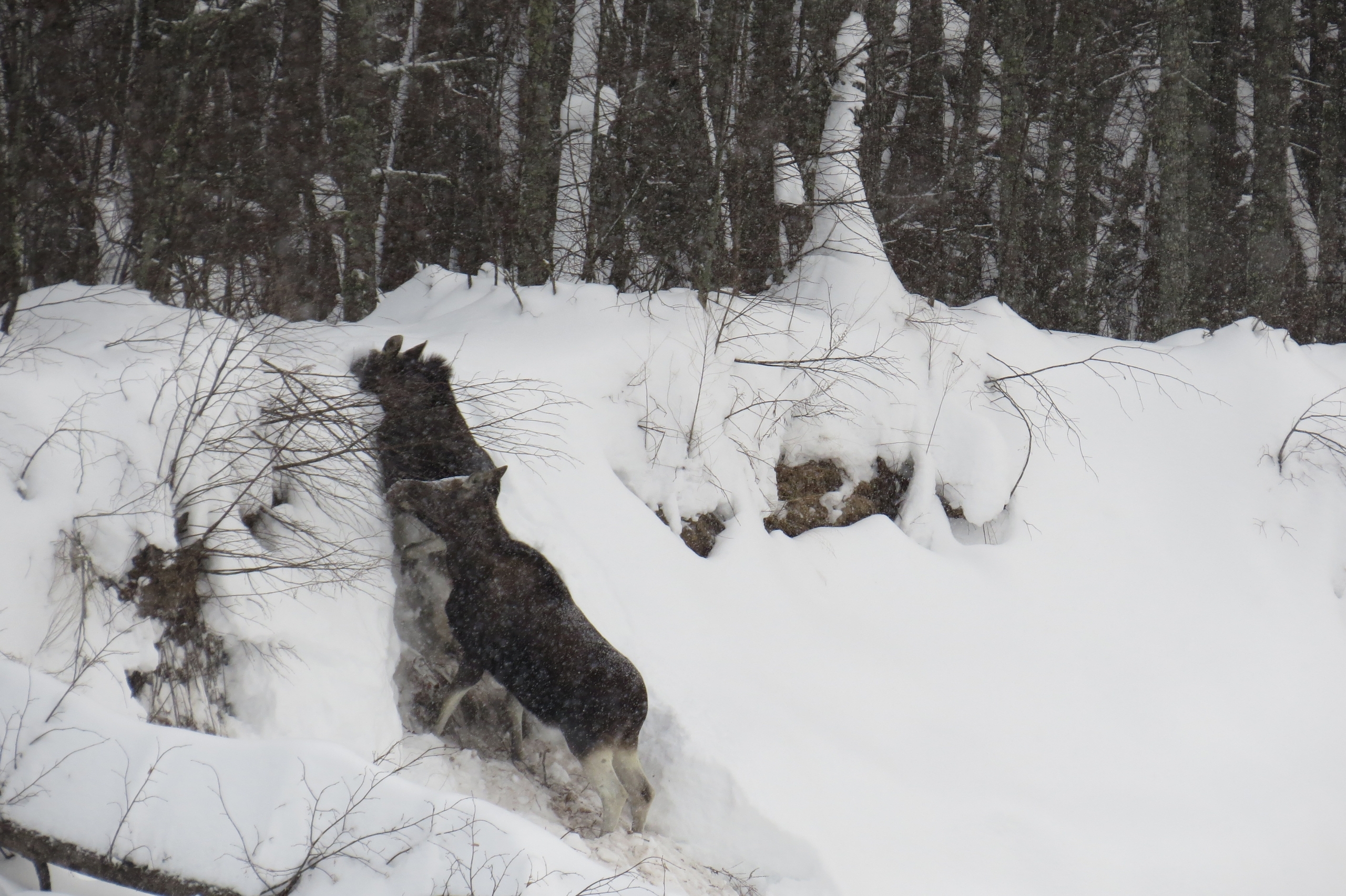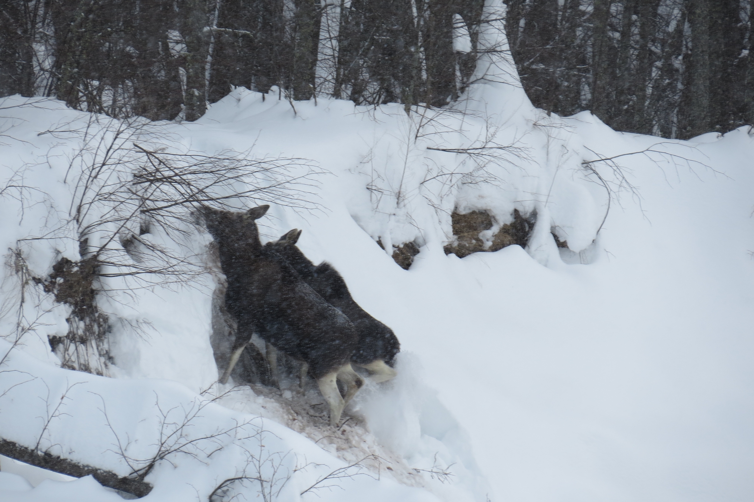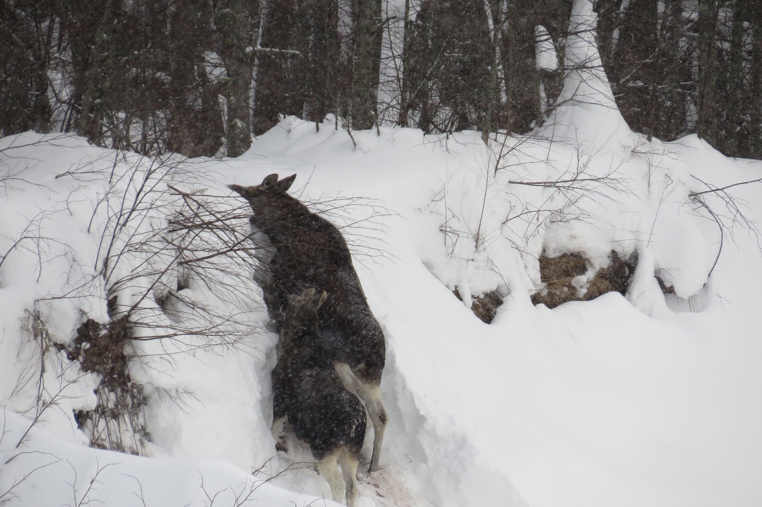 По словам экологов, им очень тяжело этой зимой, мощные ноги не спасают от глубоких сугробов. Животные поняли, что ставку надо делать на другое и выработали свою стратегию.