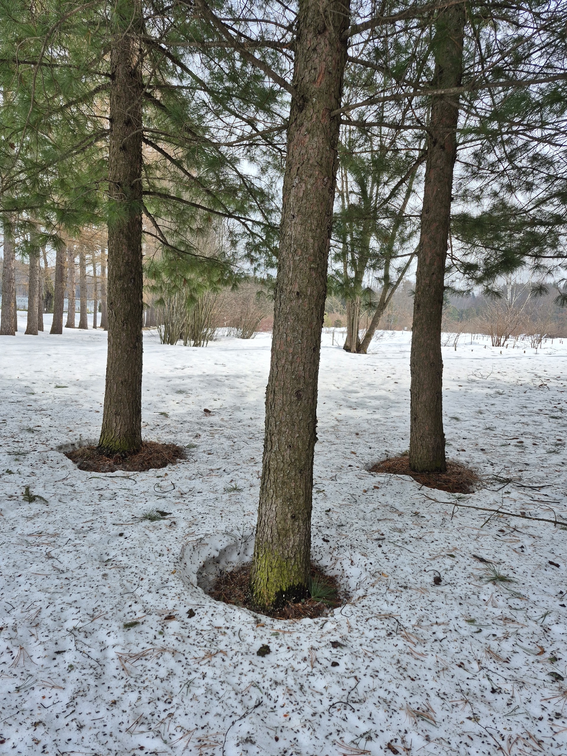В Ботаническом саду Йошкар-Олы первые проталины у стволов были зафиксированы 20 марта.